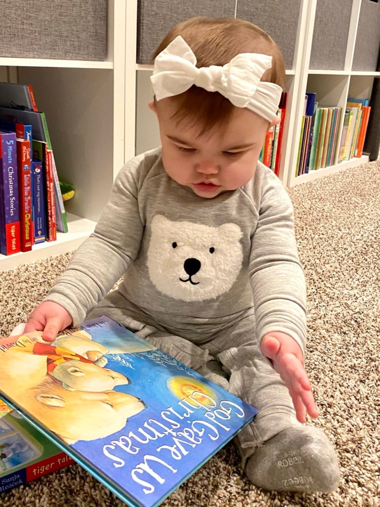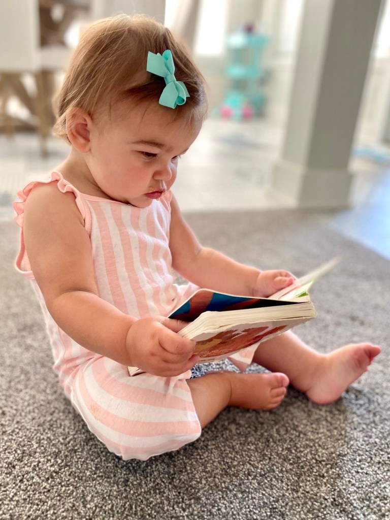 When Lucy was born, I brought that philosophy into our home. From the time she could hold her head up, I read to her constantly. Reading wasn’t just a routine—it was part of a gentle structure I called “activity time,” and books were at the heart of it. Even when she was too little to recognize letters, I would point to the words as I read. I believed her mind could take in far more than I could ever imagine, and I wasn’t going to limit her based on what I thought she couldn’t do. Pointing to the words gave her the very first stepping stone to understanding how a book works.