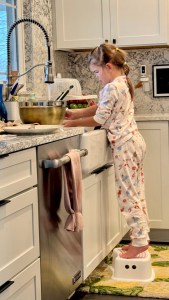Our daughter Lucy is still young, but her contributions already matter. She sets the table each evening—complete with napkins, silverware, and a little flair when she’s feeling creative. She knows how to sort and manage her laundry from washer to dryer and helps fold her clothes with surprising focus. Every morning, she makes her bed, and every night, she lays out her clothes for the day ahead. She’s also our little garden helper, always eager to weed, water, and tend the growing things.