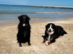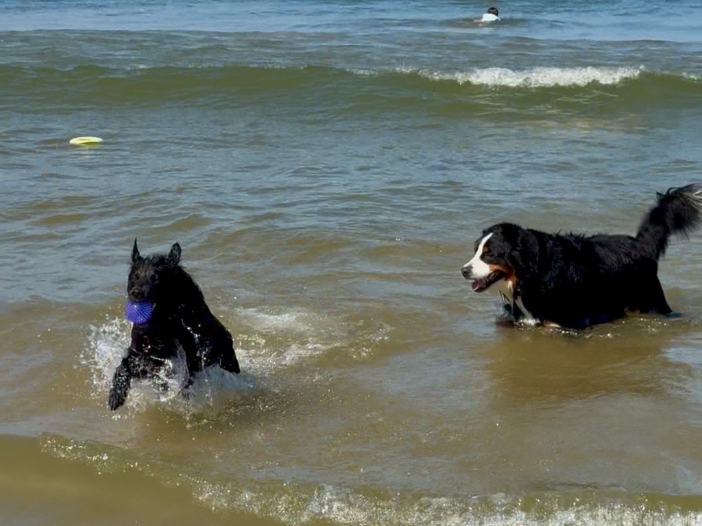 Yep—today was all about our fur kids. Splashing in the waves, chasing their favorite beach ball and a frisbee, getting soaked and sandy, and loving every second of it.