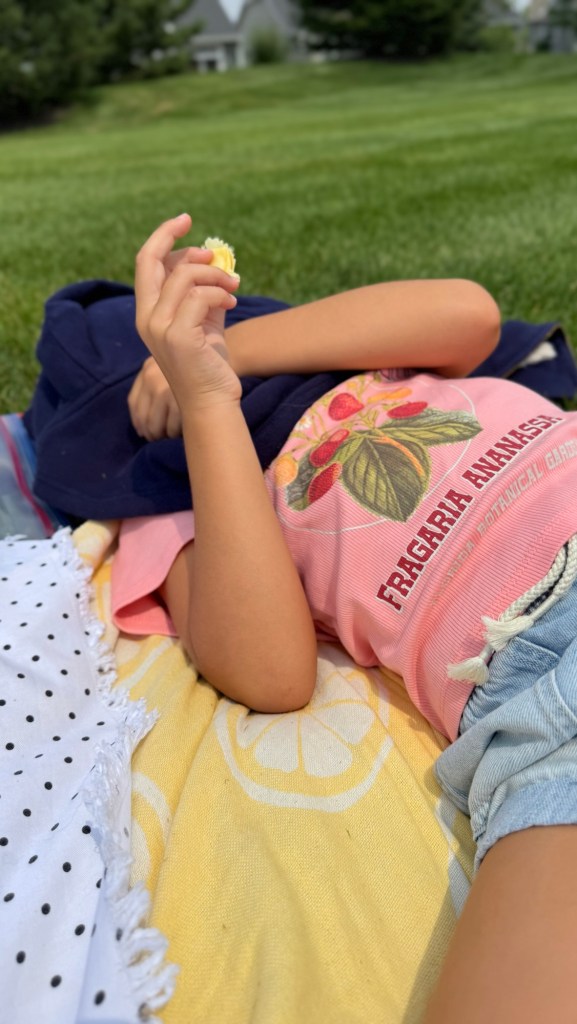 At lunchtime, we packed up some food and returned to the exact spot she had picked. It wasn’t grand or elaborate—just a patch of grass, a blanket, and some snacks—but it was perfect.