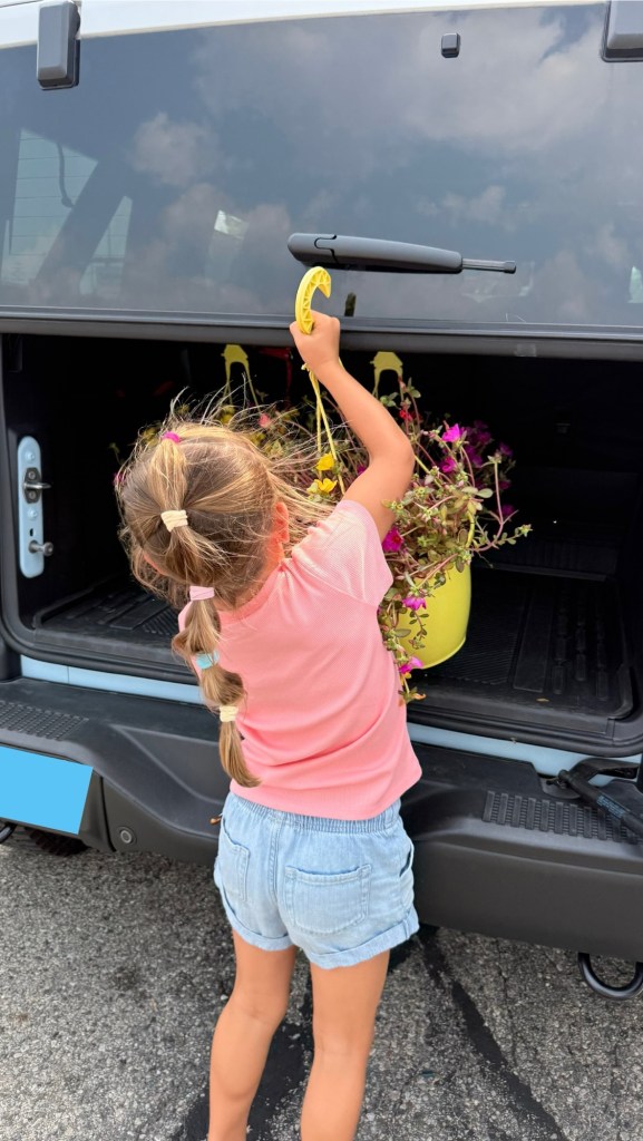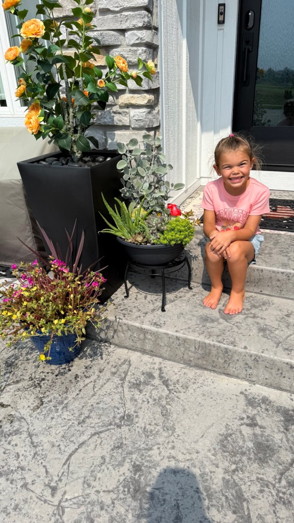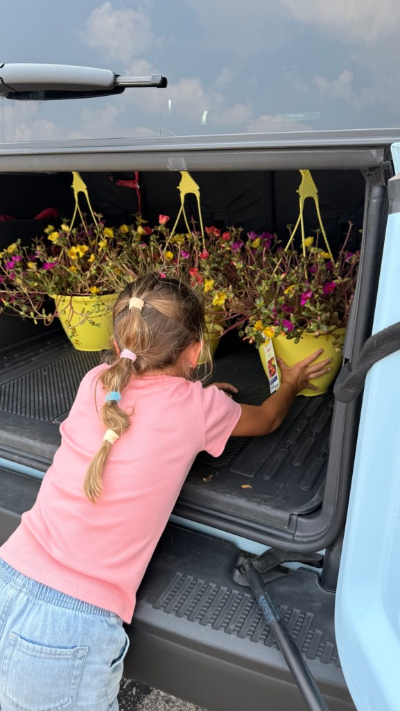 And because time together is our favorite thing, we decided to keep it going. We visited a local nursery and picked out some fall-blooming flowers—just a few cheerful additions to brighten the last stretch of summer and ease us into autumn. Lucy helped choose each one, her little hands clutching blooms like treasures.