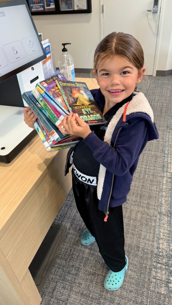But now? Now Lucy walks right past the picture book section and heads straight for the shelves lined with young reader novels. She confidently picks out Geronimo Stilton, The Boxcar Children, and other treasures that stretch her imagination and shape her character. I’ve been intentional about the novels she reads; ones with morally rich, character-building themes—stories that plant seeds of kindness, courage, and integrity. What I love most is that Lucy isn’t stuck on just one series or genre. She craves variety. She loves exploring new voices, new worlds, new lessons.
