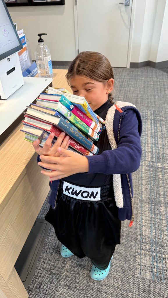 Of course, I grabbed a few novels for our read-aloud time, too, because those are still some of my most sacred moments with her—sitting together, shoulder to shoulder, lost in the same story. And here’s the part I want to encourage other parents with: don’t stop reading with your kids, even when they’re strong readers. There’s something powerful about hearing stories together, talking about the characters’ choices, and letting books spark deeper conversations. It builds connection, comprehension, and shared memories that screens will never give you.